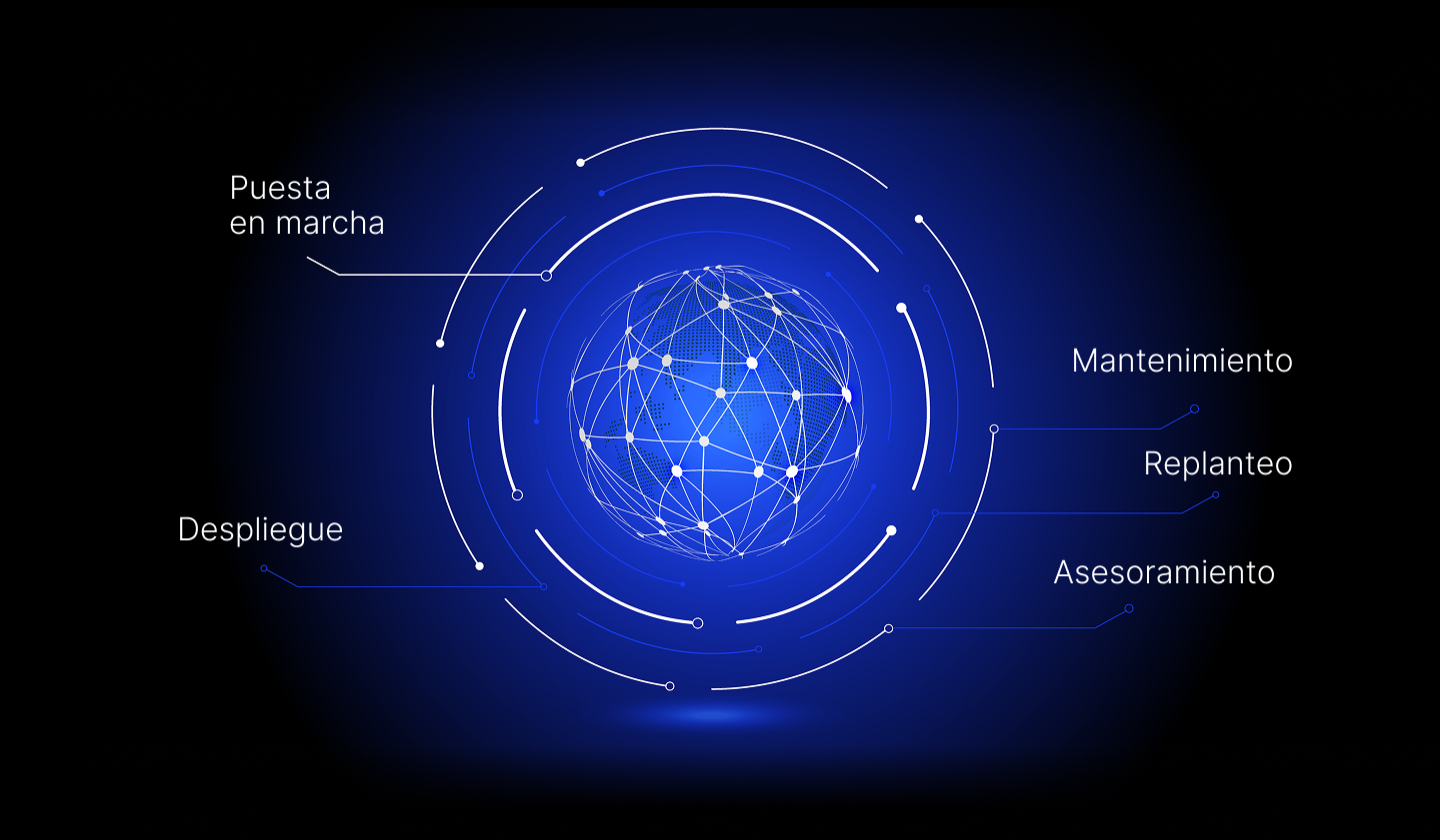 Siempre partiendo de la premisa de ser lo menos intrusivo posible, se define un Plan de Trabajo, listando las diferentes tareas, las cargas de trabajo asociadas y las posibles interferencias con la operativa del cliente, definiendo ventanas de intervención singulares, sin son necesarias. Una vez aprobado por el cliente, se ejecuta la instalación física en sitio realizando el conexionado y la verificación inicial.